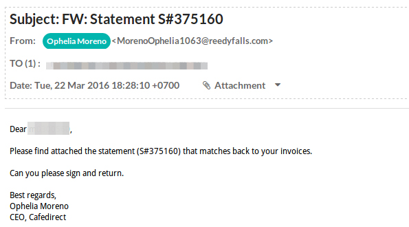 舉例來說,加密勒索軟體Petya偽裝為求職者信,是一種針對企業人力資源部門設計的招數,攻擊者在信中提供了Dropbox連結,並表示將求職照片與履歷表放在雲端儲存空間中,實際上則是一張讓用戶放送戒備的冒充求職者照片,以及裝成履歷表的解壓縮執行檔,若用戶不加思索開啟檔案,導致讓勒索軟體有機會入侵。