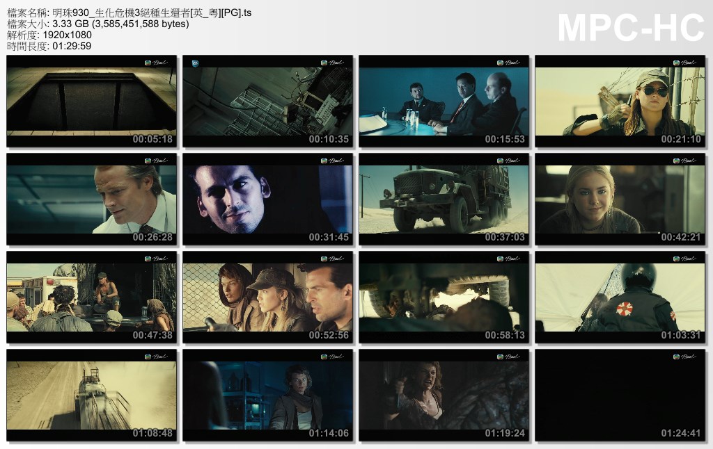 《影片名稱》:明珠930:生化危機3絕種生還者[英/粵][PG] 《影片集數》:1 《影片格式》:TS-1080i 《語言字幕》:粵英雙語-中文字幕 《錄影製作》:??? 《存放空間》:飄盤/百度網盤 《內容簡介》:延續上集故事,躲藏在那維達沙漠的女主角愛麗絲與她的戰友卡路士及L.J. 組成聯盟,尋找跟他們一樣未受感染的倖存者,並打算大舉殲滅將人類變成活死屍的致命病菌。究竟愛麗斯能否帶領眾人成功殲滅喪屍,逃離城市? ![]() 《 免 責 聲 明 》 ● 下載鏈接 僅供網路測試,無任何販售行為及獲得任何利益。 ● 本檔案的提供純為試看或試聽用途,請勿作商業上之用途。 ● 請於下載完後24小時內自行將其檔案刪除,請購買支持正版。 ● 若私自散佈造成任何法律責任,本人將對以上內容恕不負責。 禁止轉載!